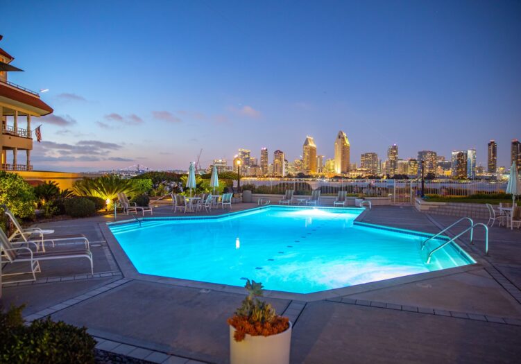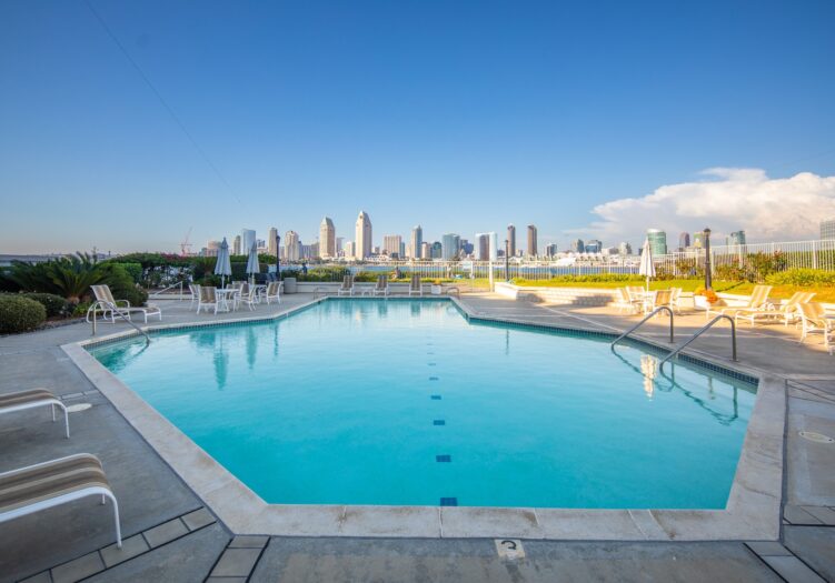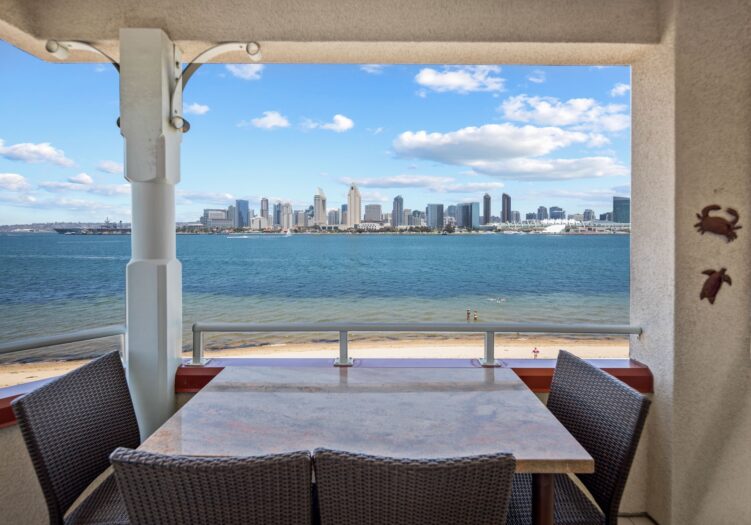 Must see to believe and available - March 1, 2026! This extraordinarily beautiful corner unit condo with spectacular views of San Diego Bay and Downtown is fully furnished and ready for guests. Located in "The Landing," you have access to a pool, spa, BBQs and gym and you are within walking distance to the Ferry Landing, restaurants, bike path around the bay, shopping, and all Coronado points of interest and festive locations!