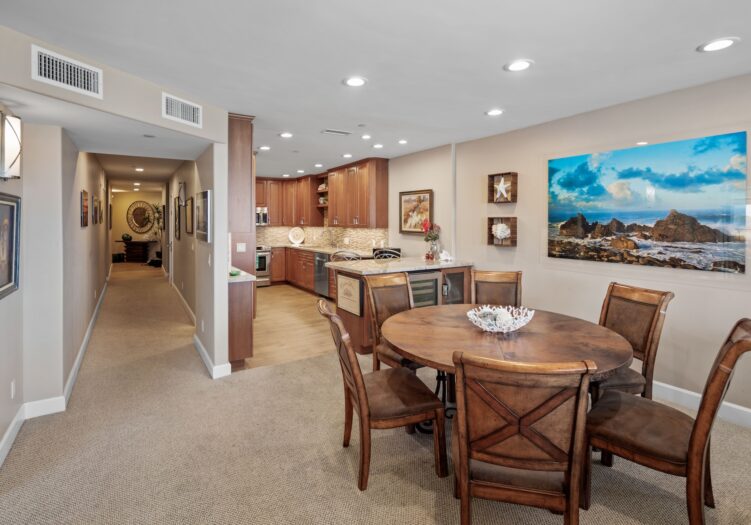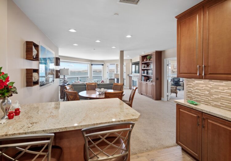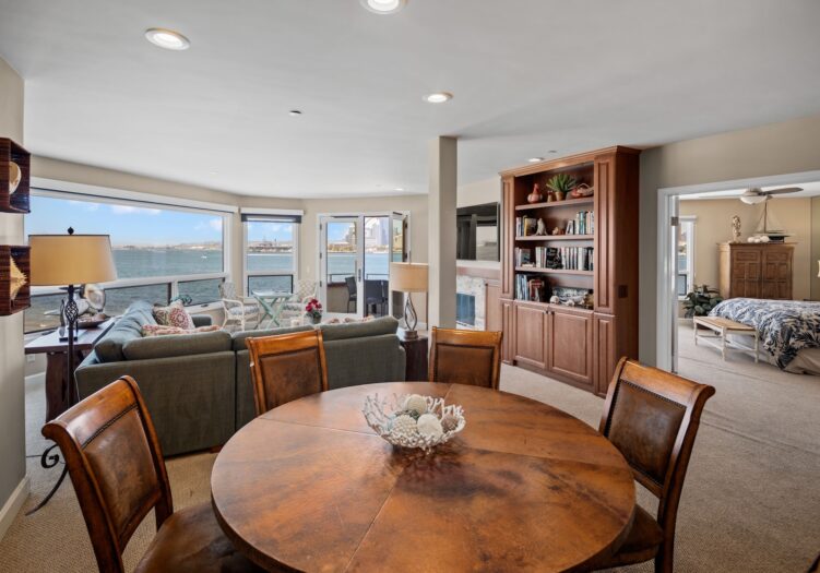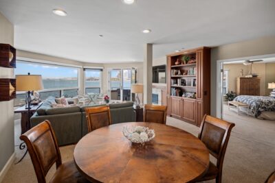 The living/dining area also enjoys the same views along with access to the sitting deck.